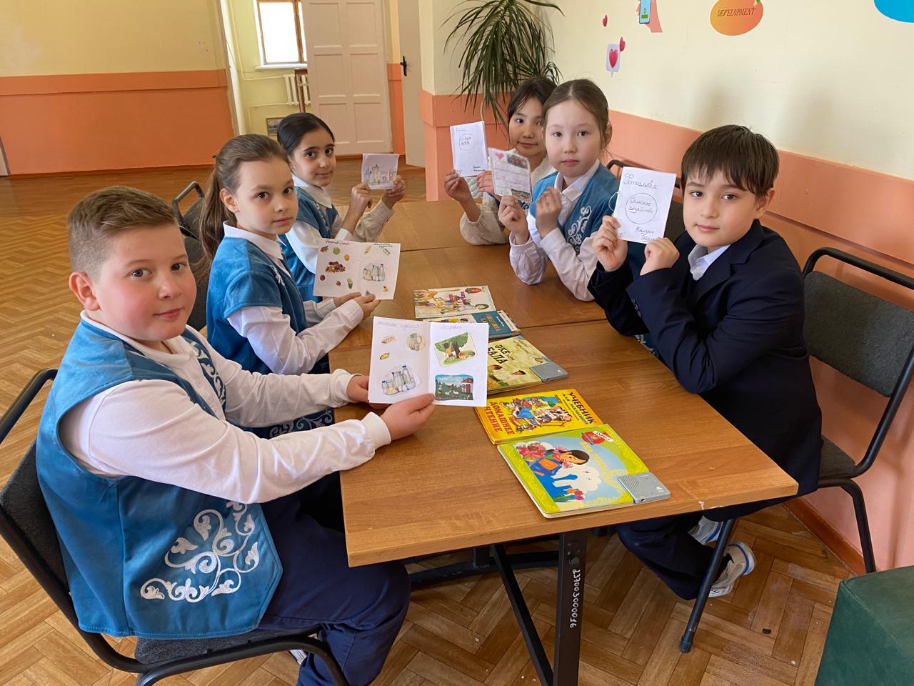 4-сынып оқушылары «Кітапша-малышка» жобасына қатысты. Балалар өздері сюжет ойлап тауып, мәтін жазып, суреттер салып, шағын кітаптарын безендірді.