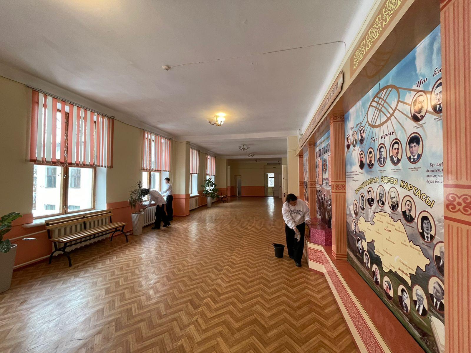 Балаларды қоршаған әлемге ұқыпты қарауға және олардың Кіші Отанына деген риясыз сүйіспеншілікке тәрбиелеу мақсатында. Әр бейсенбіде мектепте "Таза бейсенбі" акциясы өтеді, оның барысында оқушылар сынып жетекшілерімен бірге мектептің кабинеттерін жинайды. Тату ұжыммен сыныптар жұмысты үлкен ынтамен орындады.
