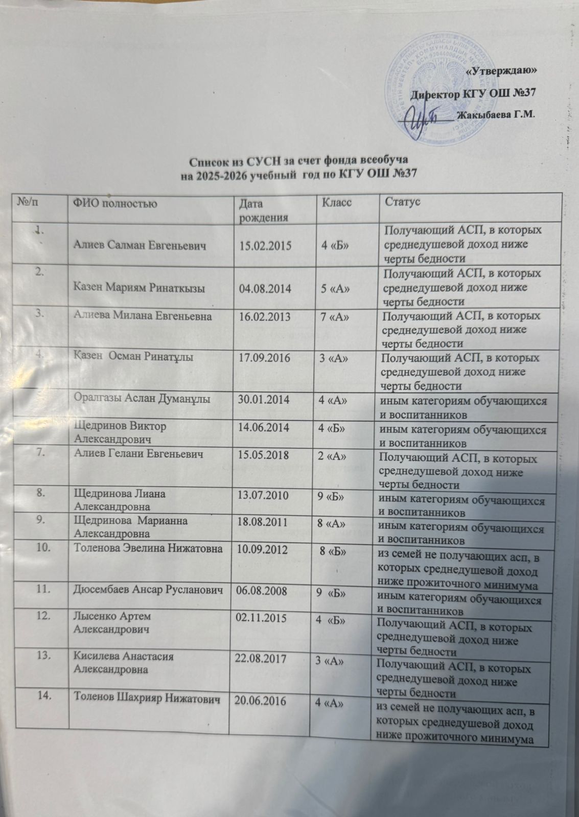 02 қыркүйек 2025 0 1 2 3 4 5 2025-2026 оқу жылына арналған жалпыға бірдей білім беру қоры есебінен СУСН тізімі/ Список СУСН за счет фонда всеобуча на 2025-2026 учебный год