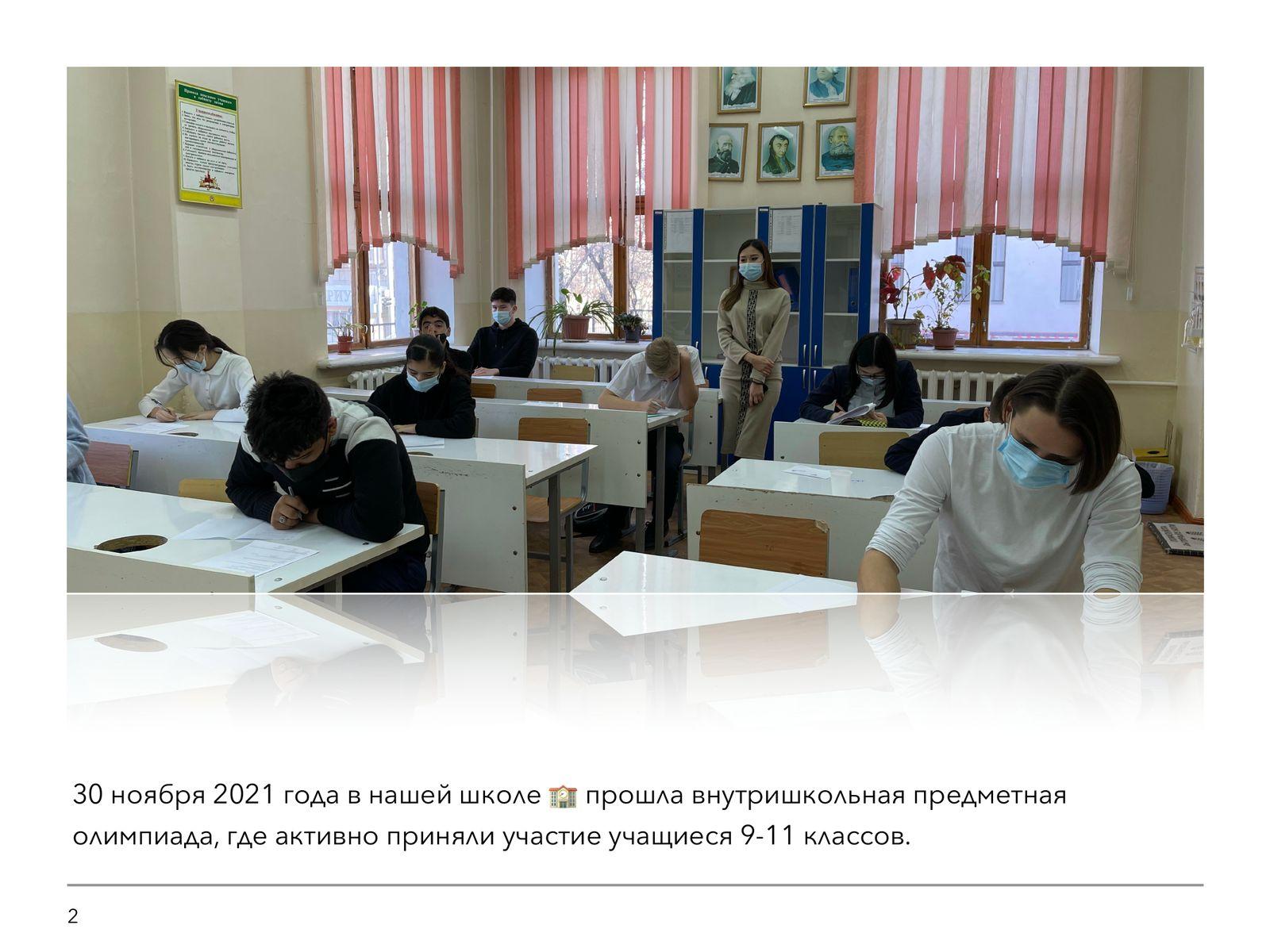 03 желтоқсан 2021 0 1 2 3 4 5 ВНУТРИШКОЛЬНАЯ ПРЕДМЕТНАЯ ОЛИМПИАДА ВНУТРИШКОЛЬНАЯ ПРЕДМЕТНАЯ ОЛИМПИАДА 30 ноября в нашей школе прошла внутришкольная предметная олимпиада, где активное участие приняли ученики 9-11 классов. Ученики, занявшие 1 место напрвлены на районный тур олимпиады.