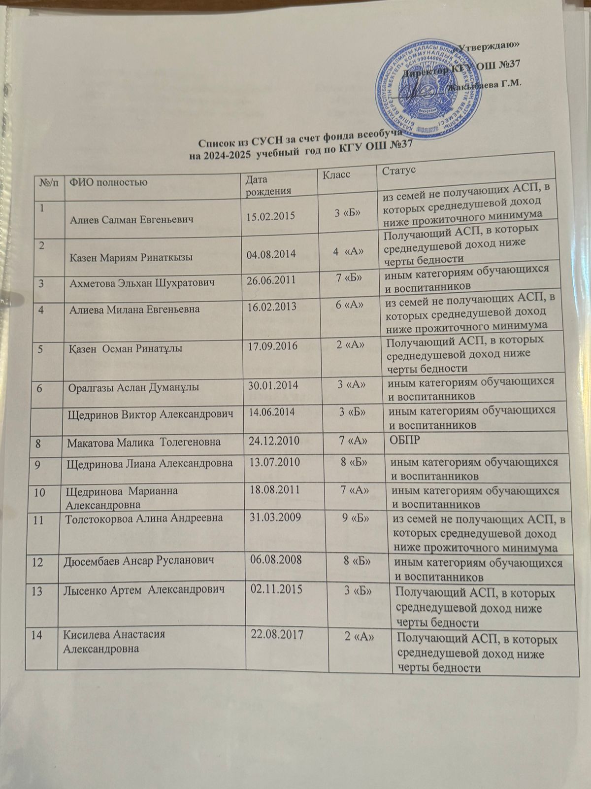 Список из СУСН за счет фонда всеобуча на 2024-2025 учебный год